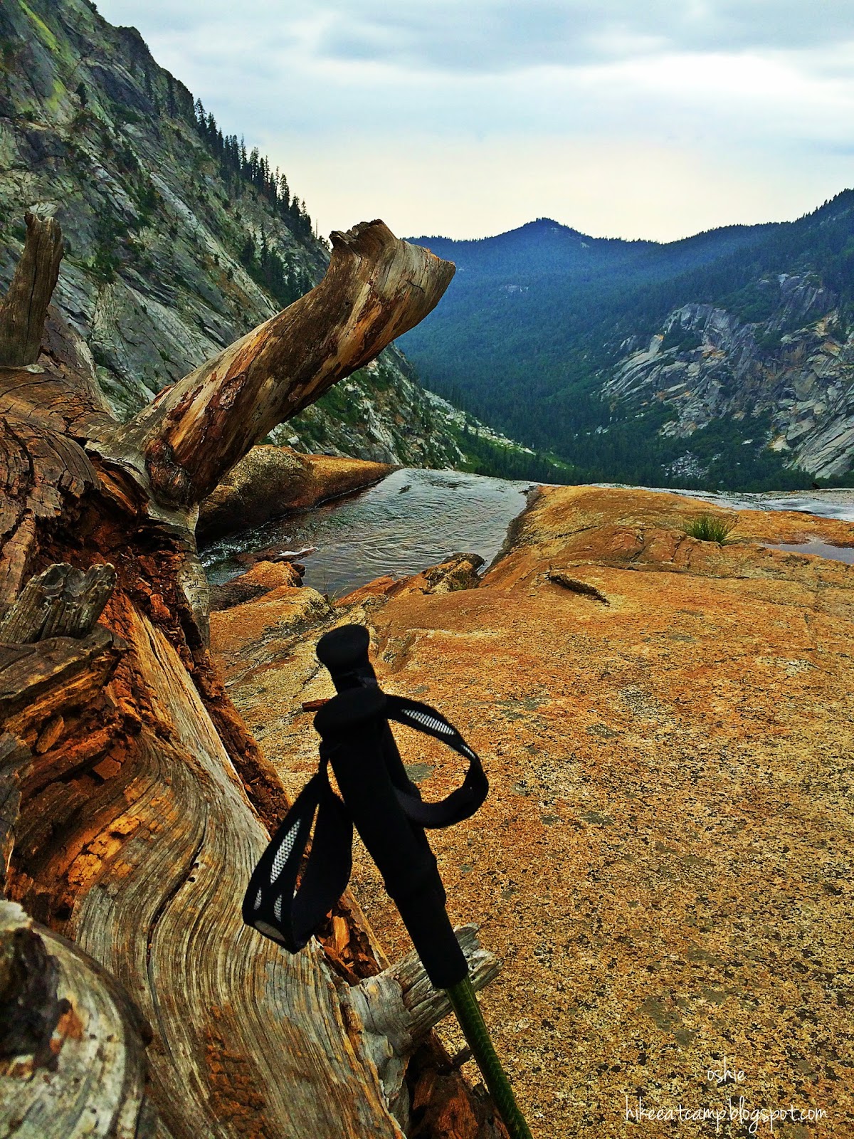 We climbed a few feet more and could see the granite wall that I know is the backdrop of the lake I've been day dreaming about since.. forever. It was a tease. So close, yet so far was on repeat on my mind to prod my feet to keep on moving.